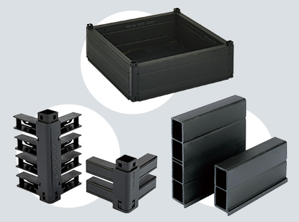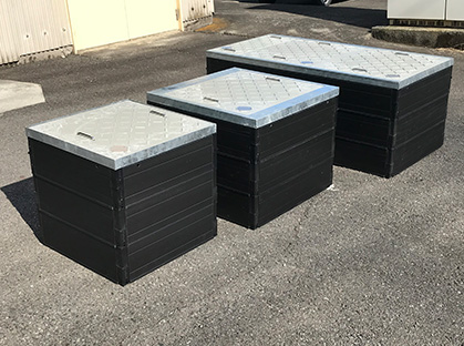「ROM-Box」は、軽量組立式樹脂製ハンドホールです。 一段200mm高さの側壁を積み重ねて施工する組立式ハンドホールです。 樹脂製ハンドホールなので現場加工が容易です。